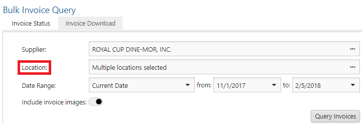 Enter the range of invoice numbers you are researching > select a supplier > click Query Invoices.