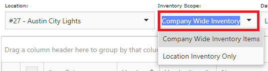 In the Inventory Scope drop down list, by selecting Inventory Locations Only, ONLY locations with this item setup in their Inventory will populate. By selecting All Locations, all theater locations will populate. To setup a new location for this item, select All Locations.
