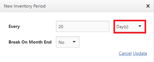 Inventory periods can be setup in daily, weekly, or monthly intervals.