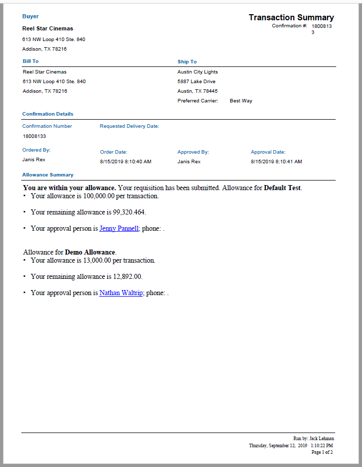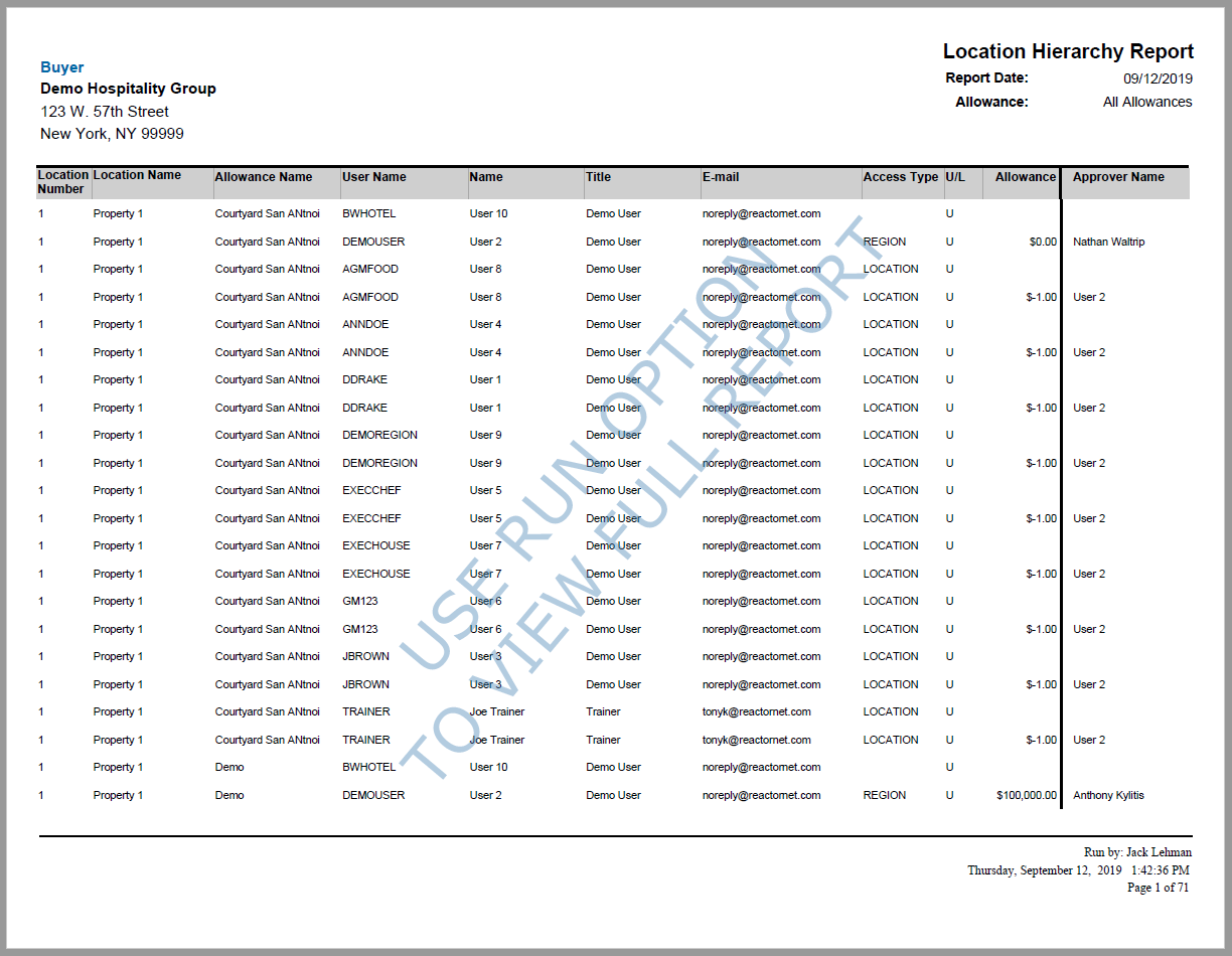General Setup | Allowance Hierarchy Report (formerly called Location Hierarchy Report) | List of location level users and their allotted spend for allowances. | |
