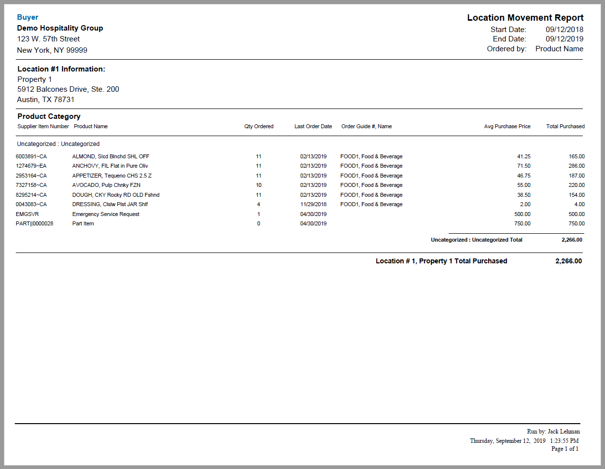 Compliance | Location Movement Report | List of items ordered by a location within a defined date range. | |