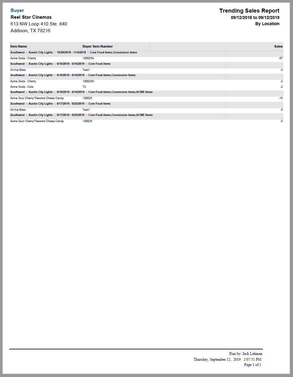 Inventory | Trending Sales Report | List of sales per locations. | |